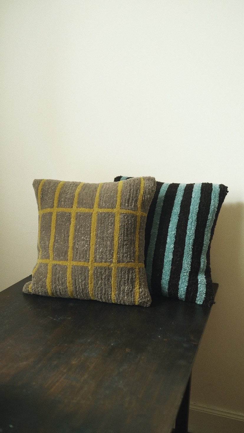 One-off lounge cushion. Designed, hand-tufted, shaved and sewn in our Glasgow studio.