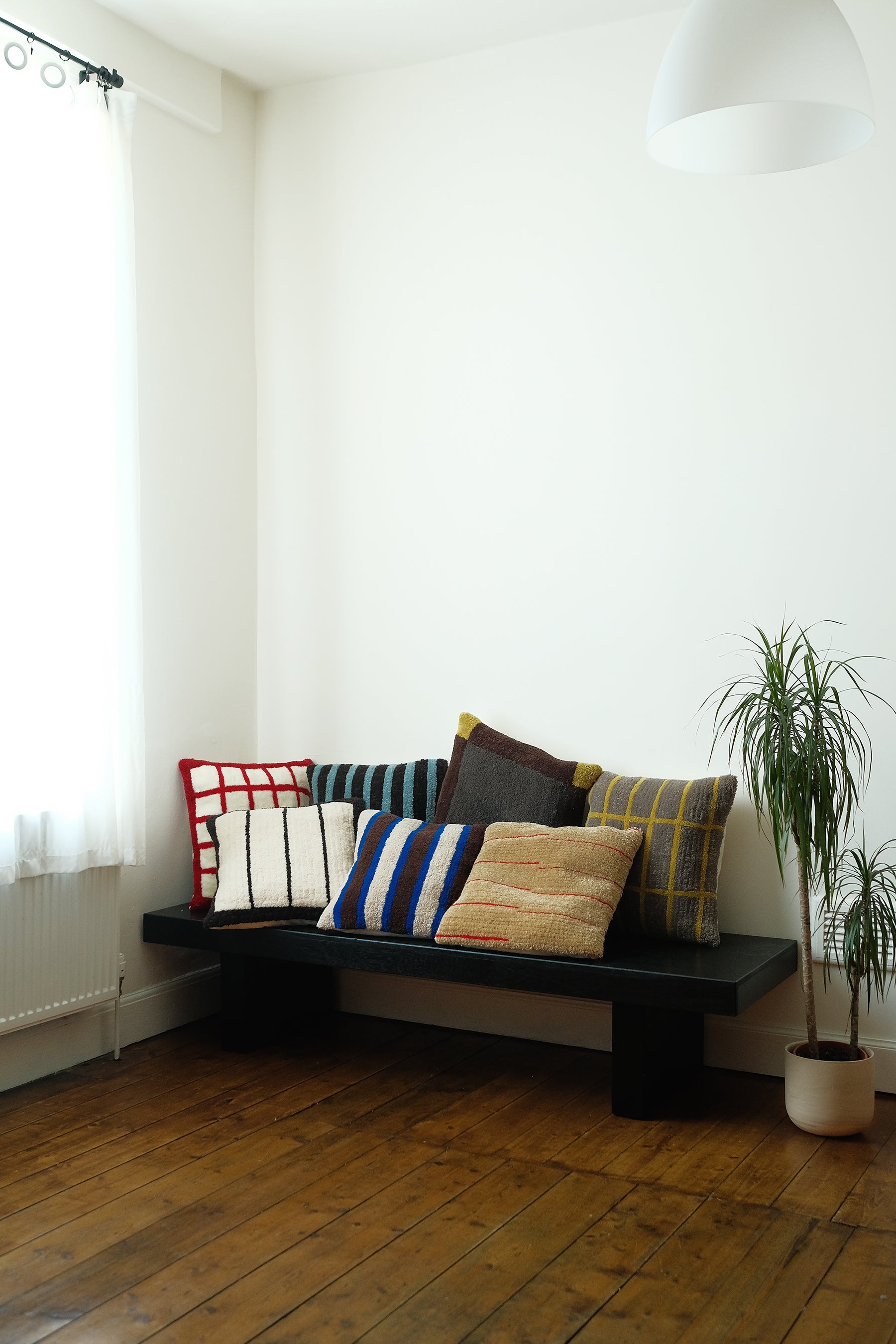 One-off lounge cushion. Designed, hand-tufted, shaved and sewn in our Glasgow studio.