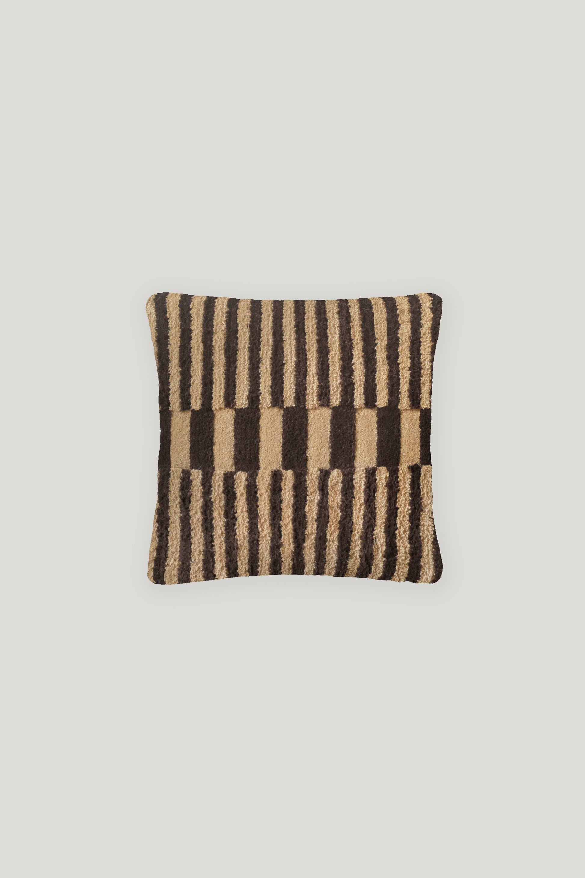 We utilise discontinued yarns to create these textile pieces. Each shades of yarns are collected in limited quantities, processed in our workshop by sorting, weighting and colour studies. We transform these materials into one-of-a-kind cushions, crafting only 1 × piece in each textile drop to minimise surplus and waste.
