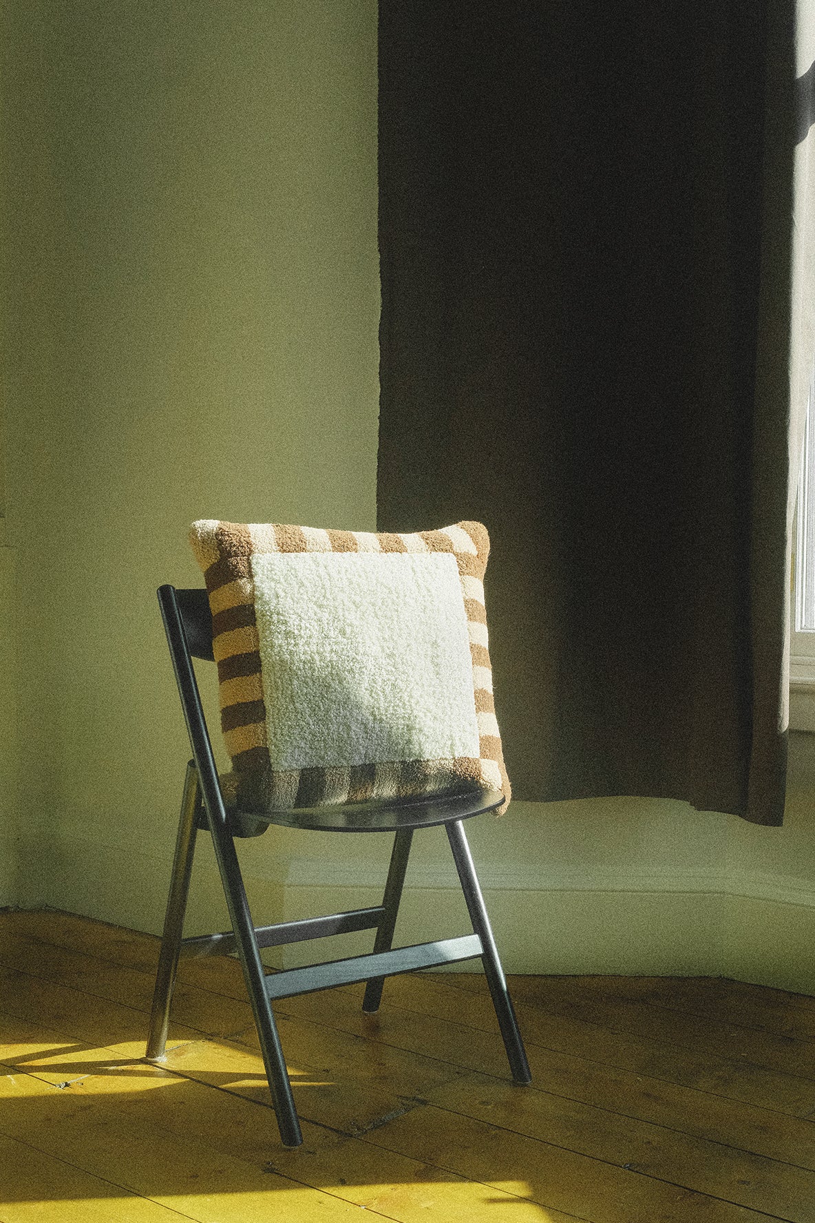One-off lounge cushion. Designed, hand-tufted, shaved and sewn in our Glasgow studio.