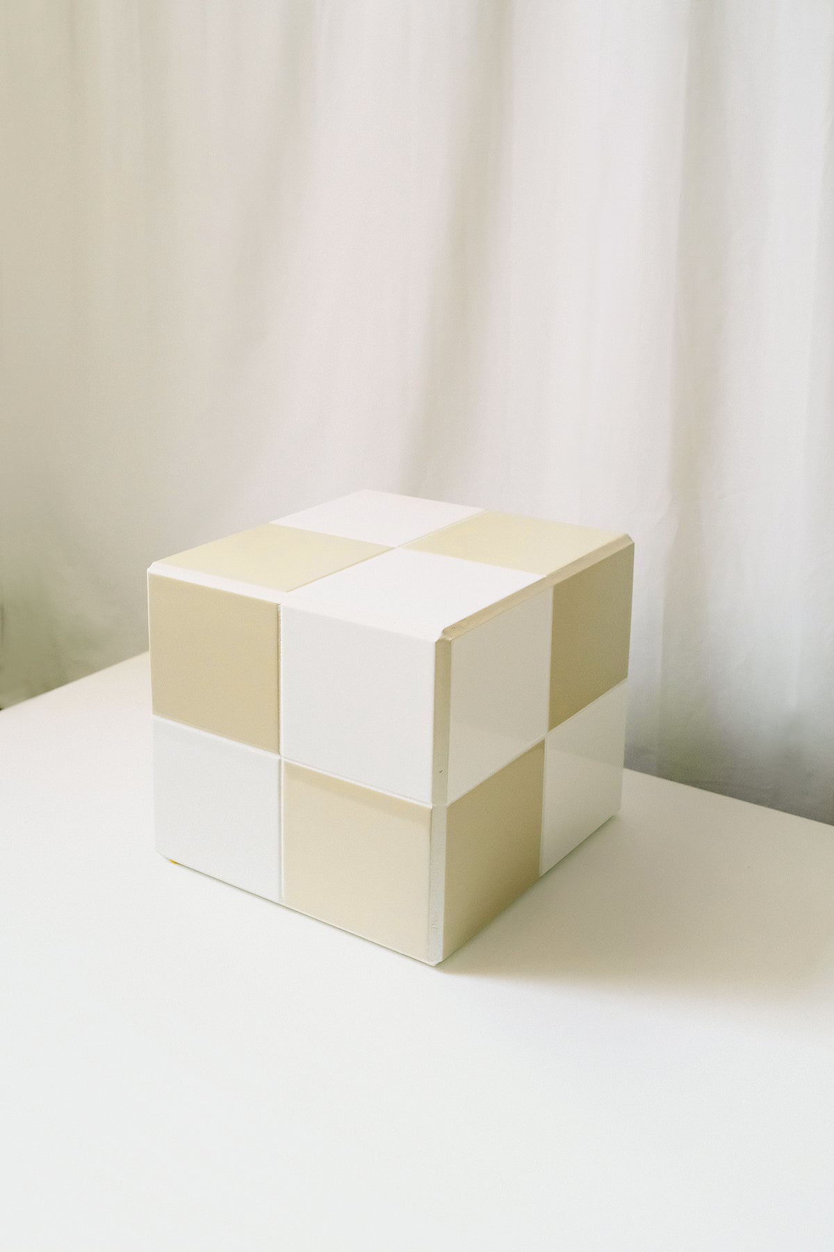 Palette cube in 09/beige and 01/white, made with extra tiles selected from various bespoke projects.