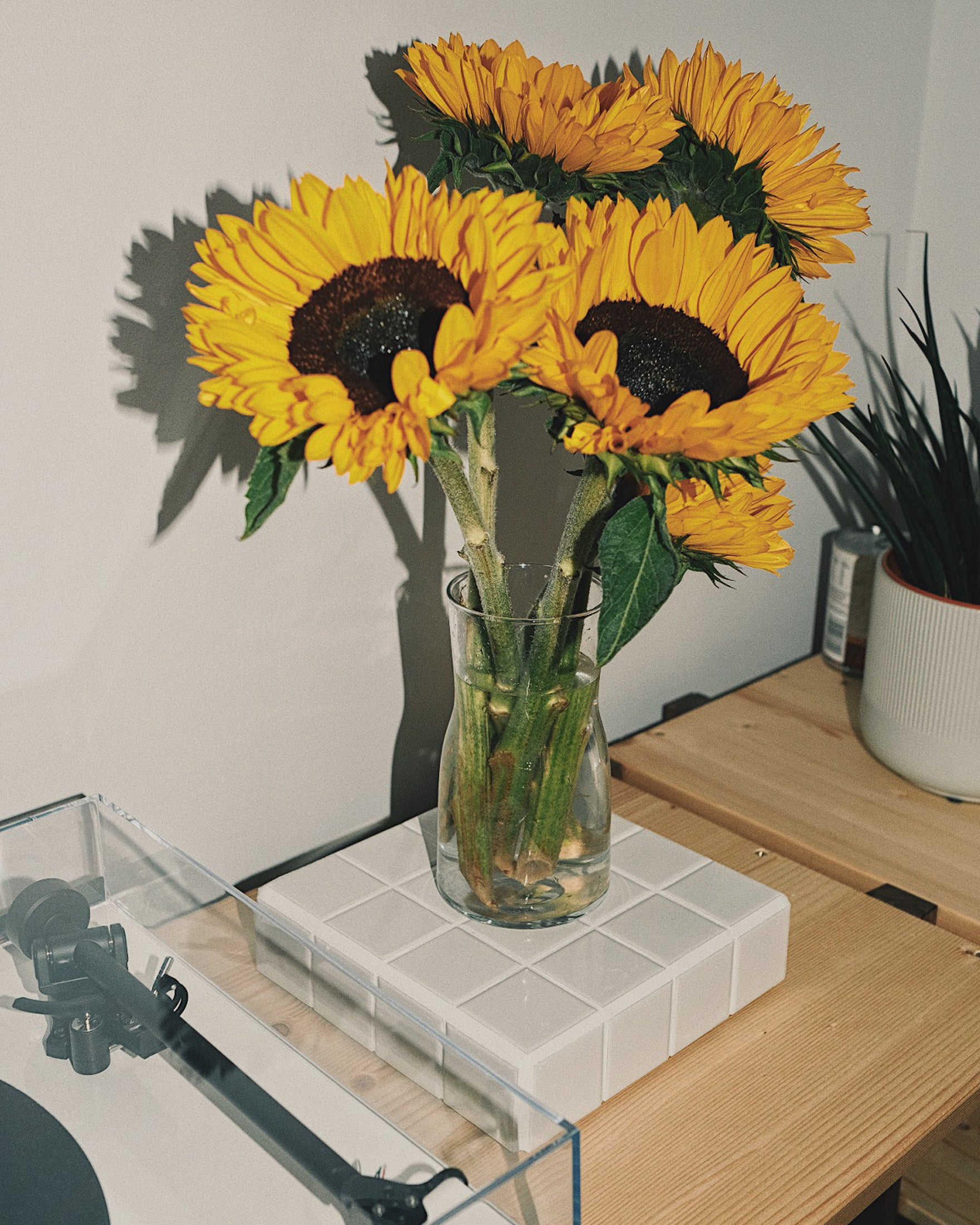 Platform 20 will brighten up any tablescape. Mix and match our tiled platform available in a variety of colours to elevate your home decor, from styling them with botanics to adding an accent to a dining table. Lined with cork and rubber feet.