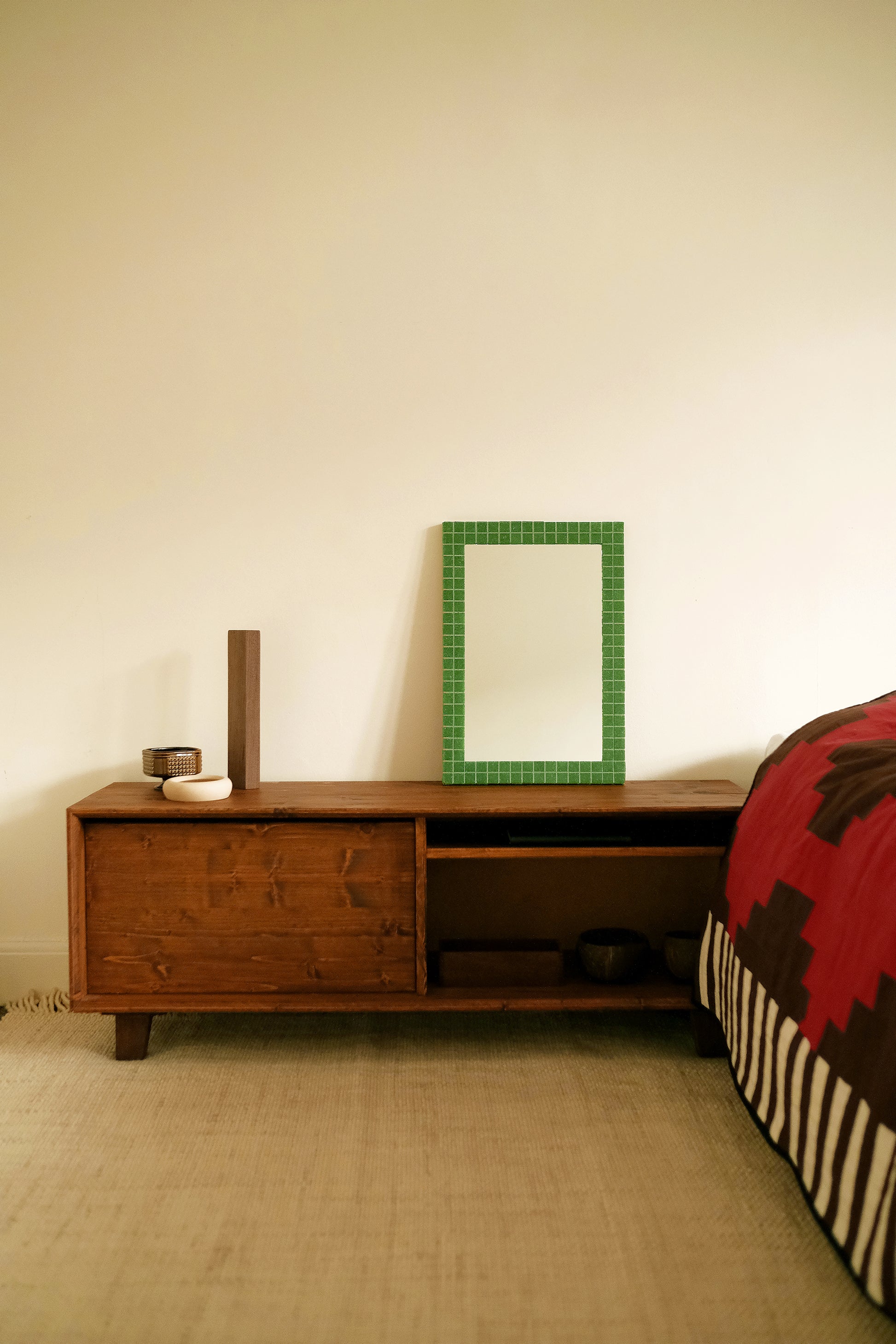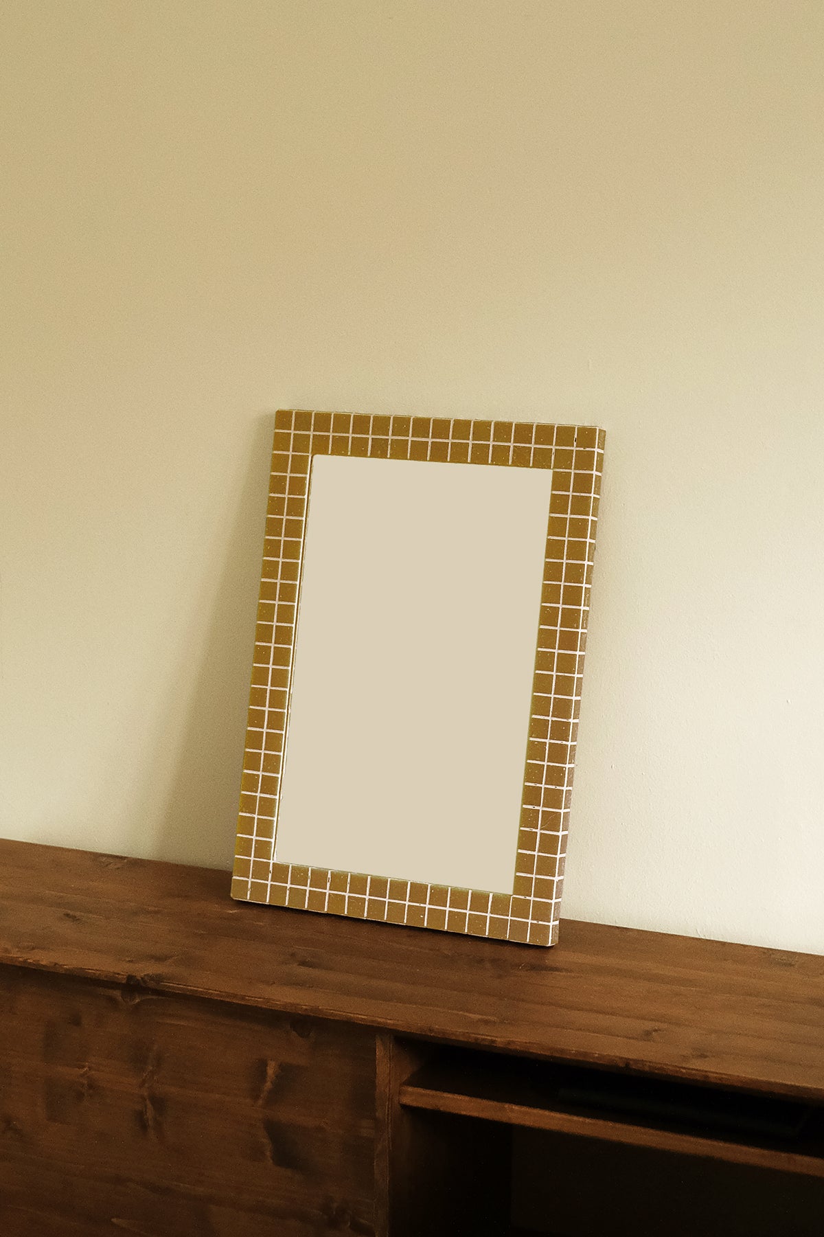 Material: Mirror, glass tiles, grout, wood
